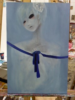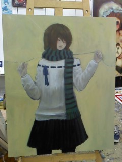 筆洗い場は外にあるんですが風が冷たくてヒイヒイいいながら筆洗ってました。